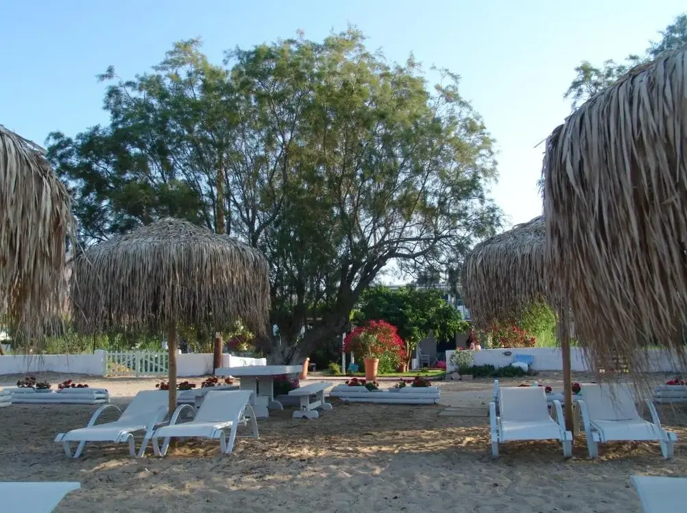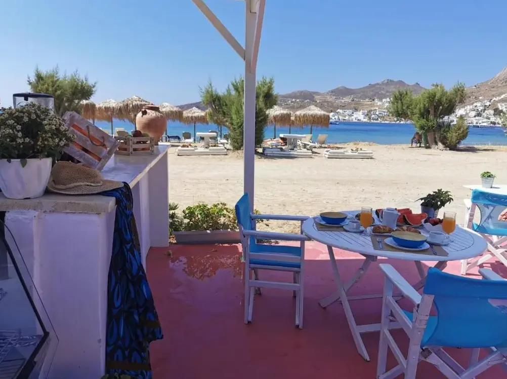 Perfect location at Livadi just few steps from shops and restaurants, beach front with private umbrella / sun bed set as described , very nice garden with private patio
